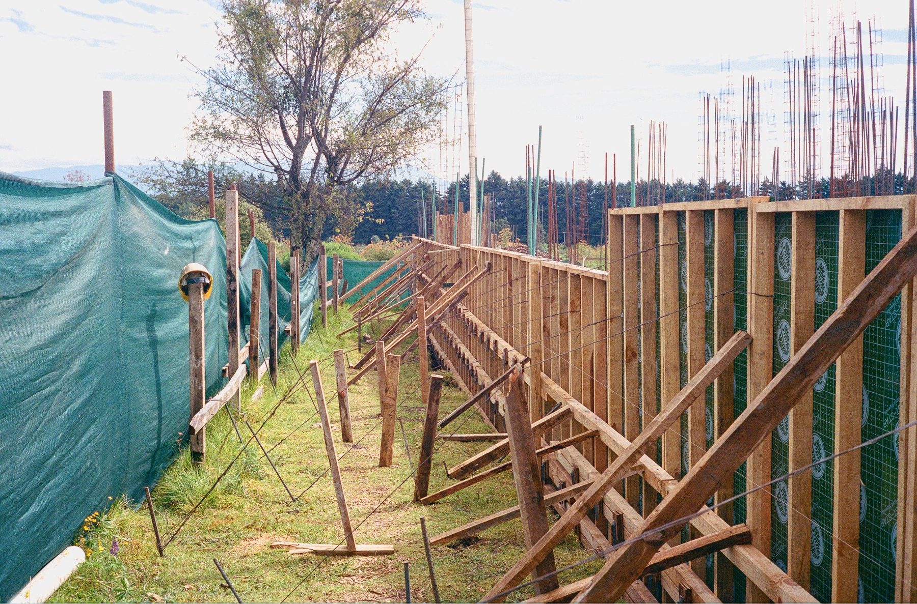 Materialmente quisimos acotar lo más posible la paleta de materiales, la casa cuenta con un basamento de concreto a lo largo y después…